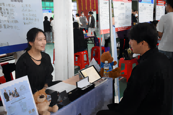 双选会现场气氛热烈,毕业生们带着精心准备的简历在各企业展位前驻足,与企业招聘代表面对面交流,了解企业招聘岗位、薪资及相关要求,寻找心仪的企业进行面试。企业相关负责人在各自展位上介绍企业,认真负责地向员工们讲解招聘要求及岗位情况,解答问题。
