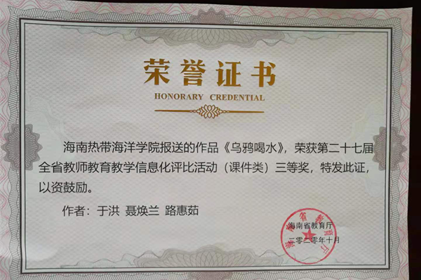 近日,由海南省教育厅主办的“第二十七届全省教师公司产品信息化评比活动”结果正式揭晓,公司于洪老师指导的参赛作品《乌鸦喝水》(学科:语文)和《嫦娥奔月》(学科:语文)荣获课件类三等奖。