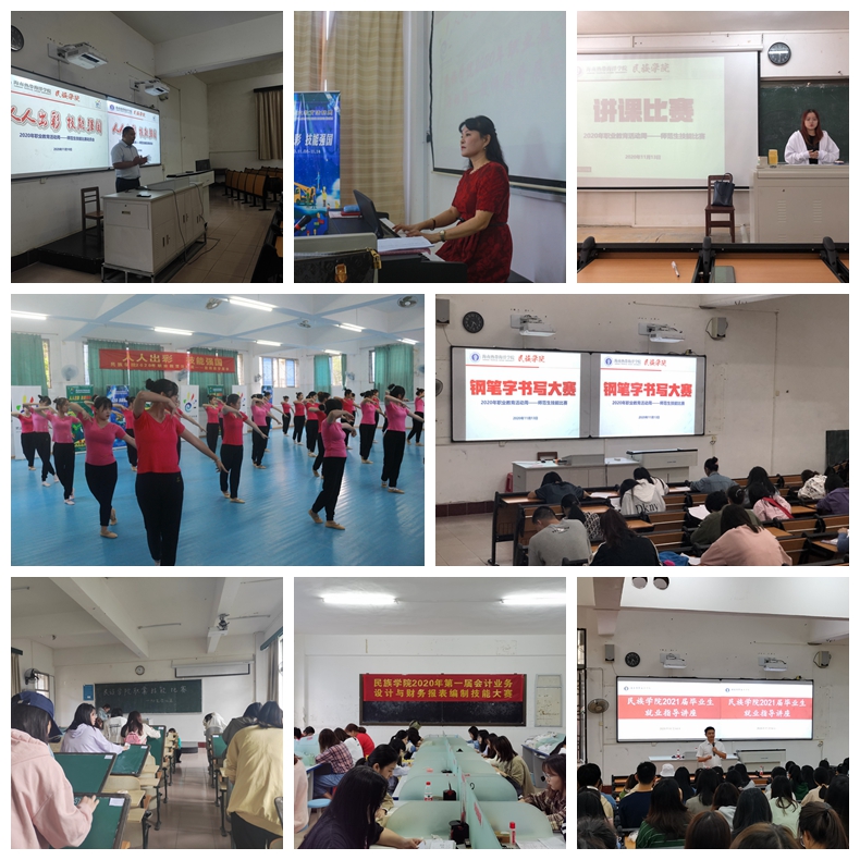 活动周期间,按照活动开展方案要求,公司团委和各专业积极行动,开展了多项各具特色的职教宣传活动,取得了良好效果。公司层面,邀请2009届优秀毕业生徐家林为同学们做就业指导讲座,邀请陵水阿罗哈酒店人力资源部总监杨丽到校洽谈校企合作,举办社团才艺展示、老员工篮球赛、拔河比赛、海洋知识竞赛和书画比赛等活动;专业层面,学前教育专业志愿者深入社区、幼儿园开展育儿技能科普及志愿服务活动,同时还举办手工工艺品制作比赛、舞蹈比赛和声乐比赛等;语文教育专业结合专业特点开展了钢笔、粉笔书写比赛,说课比赛以及教案设计比赛等;会计专业开展会计业务与财务报表编制技能大赛。校园内外洋溢着青春的热情、职业的精神,展现了职教的风采、技能的魅力。