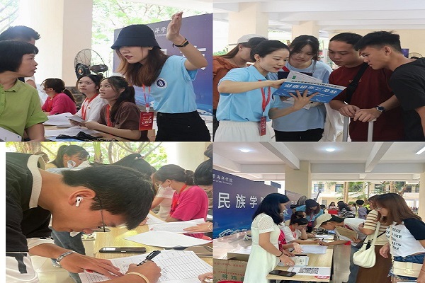 报到当日,民族公司党委书记吴启学、副书记李达辉带领着辅导员、班主任及员工干部全力做好接待设施布置、道路指引、报到手续、行李运送等工作,为新生提供了贴心周到的服务。公司师生以优质的服务去迎接新生,耐心地与家长沟通,安排座位给家长休息,引领着23级新生穿梭于报名登记、领取水卡、领取军训服等办理入学手续必经的各个地点。所有人对每一个细节都做到精益求精,在效率和质量两不误的情况下顺利完成任务。烈日炎炎,大家都坚持在迎新工作第一线,为前来报到的新生创造出一份家的温馨,让远离家乡的学子们感受到beats365官网入口这个大家庭的温暖。